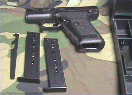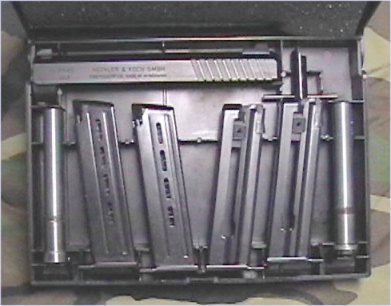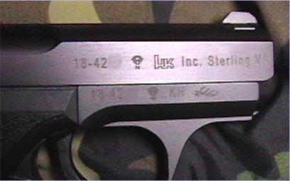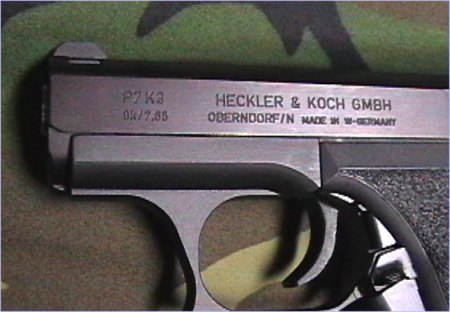 General (Updated 1/2004) The P7K3 is the most recent and smallest member of the P7 family. Through the use of caliber conversion kits, each gun can be converted to three different calibers (Kalibers 3). Unlike the fixed barrel of the larger guns, the P7K3 barrel is held in place in the frame by a barrel nut. It can be removed and exchanged for a barrel of a different caliber. The barrels have polygon profile bores. When converting to .22 LR, which is a rim fire round, the whole slide must also be exchanged. This second slide is part of the .22 LR conversion kit. The .22 LR conversion barrel has an unusual "piston" in the end of the barrel with the actual .22 chamber in this piston, When the gun fires the chamber pressure is applied to the entire area of the piston, and not just the cartridge. This provides sufficient force to cycle the action. The P7K3 has an inertia blow-back action, unlike the gas-retarded action of the P7M8, etc. It uses uses a hydraulic slide buffer in place of the gas-retarding piston of the larger guns in the family. A gauge is supplied with the gun to see if the little buffer piston is still sticking out far enough. If it isn't, then it is worn out. The piston could be replaced if HK would sell or give you one -- but they typically won't, so the gun is junk at that point. Check this when buying.