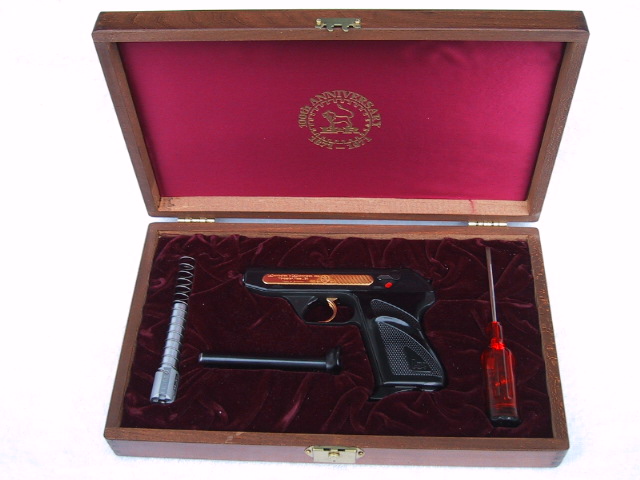 Finish: Blue/black with gold name plate and gold trigger.Commemorative Pistol Set $160.00