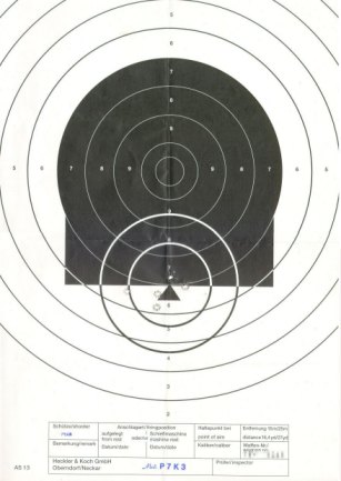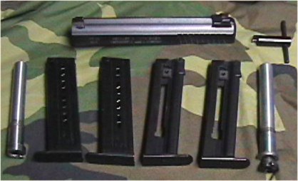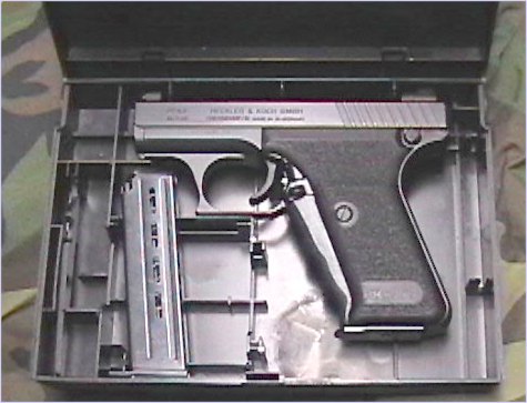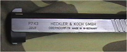 General (Updated 1/2004) The P7K3 is the most recent and smallest member of the P7 family. Through the use of caliber conversion kits, each gun can be converted to three different calibers (Kalibers 3). Unlike the fixed barrel of the larger guns, the P7K3 barrel is held in place in the frame by a barrel nut. It can be removed and exchanged for a barrel of a different caliber. The barrels have polygon profile bores. When converting to .22 LR, which is a rim fire round, the whole slide must also be exchanged. This second slide is part of the .22 LR conversion kit. The .22 LR conversion barrel has an unusual "piston" in the end of the barrel with the actual .22 chamber in this piston, When the gun fires the chamber pressure is applied to the entire area of the piston, and not just the cartridge. This provides sufficient force to cycle the action. The P7K3 has an inertia blow-back action, unlike the gas-retarded action of the P7M8, etc. It uses uses a hydraulic slide buffer in place of the gas-retarding piston of the larger guns in the family. A gauge is supplied with the gun to see if the little buffer piston is still sticking out far enough. If it isn't, then it is worn out. The piston could be replaced if HK would sell or give you one -- but they typically won't, so the gun is junk at that point. Check this when buying.